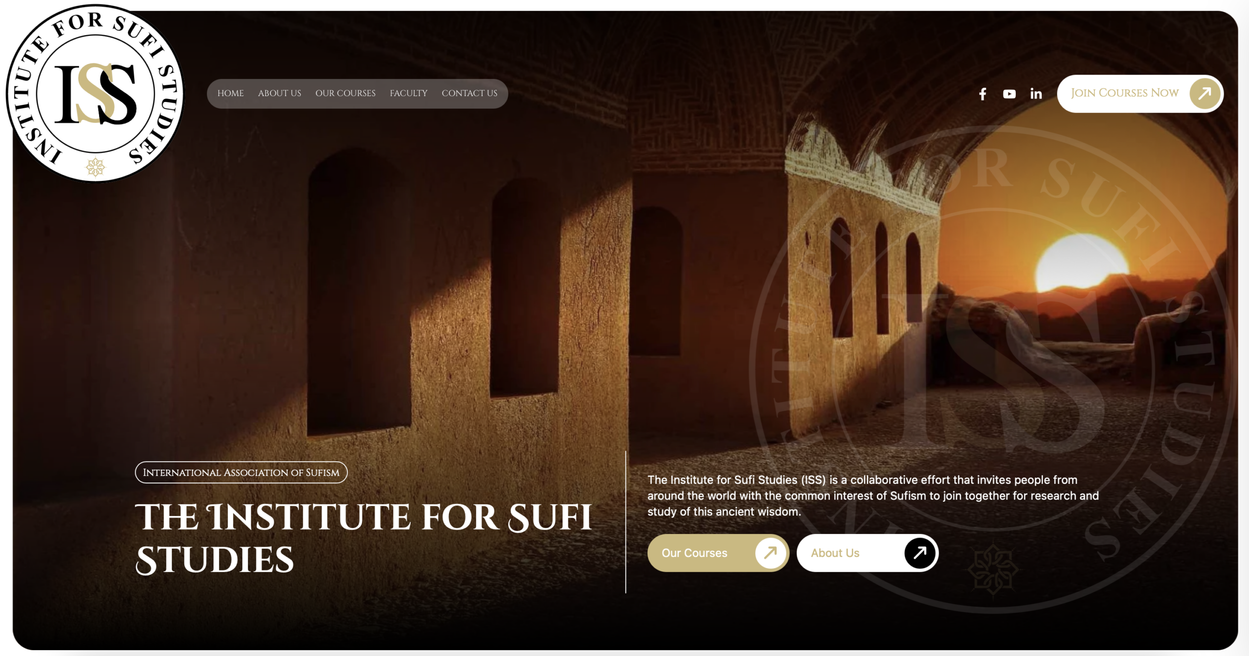The Institute for Sufi Studies (ISS) is a collaborative effort that invites people from around the world with the common interest of Sufism to join together for research and study of this ancient wisdom. ISS began in 2000 as an educational department of the International Association of Sufism. ISS offers classes directly through its center, online and at other educational institutions. Faculty are practitioners of Sufism as well as teachers in many diverse disciplines, including religion, literature, psychology, philosophy, sociology, education, martial arts, and science.